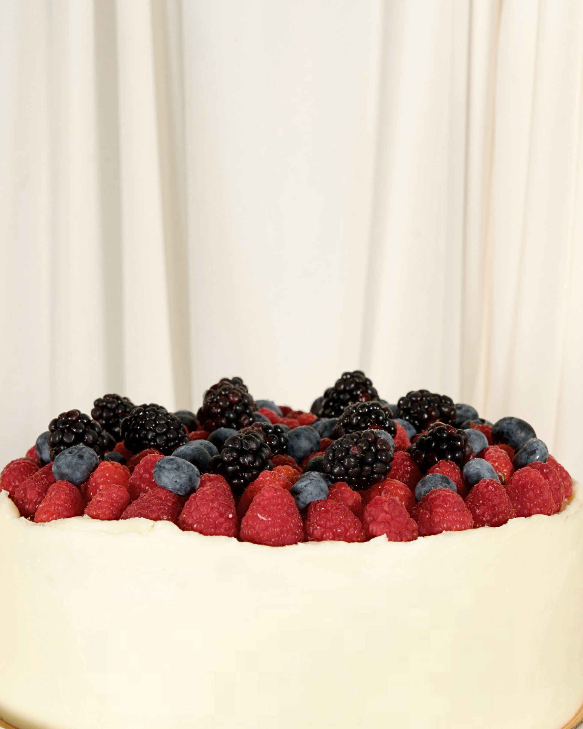 Crafted to honor the beauty of French-inspired patisserie, this cake is designed not only to nourish but to enchant — layered with romance, crowned with organic blueberries, raspberries, and blackberries, and made to be the centerpiece of any celebration, from intimate gatherings to grand occasions.